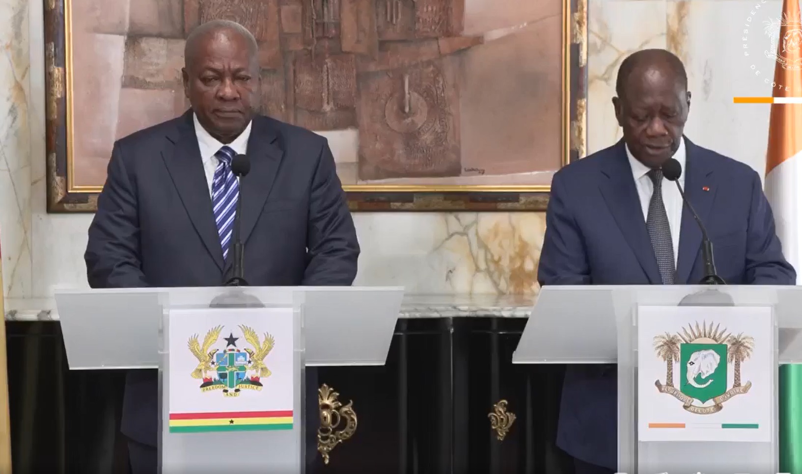 Lors de la conférence de presse commune aux 2 chefs d’Etat, où climat, coupure de l’USAID ont fait l’objet de questions réponses, le «problème de nos pays frères de l’AES, nous allons essayer de le traiter avec la meilleure manière», a lâché le président ghanéen. Il y avait donc la relation AES-Côte d’Ivoire. Avec le Ghanéen comme médiateur.
